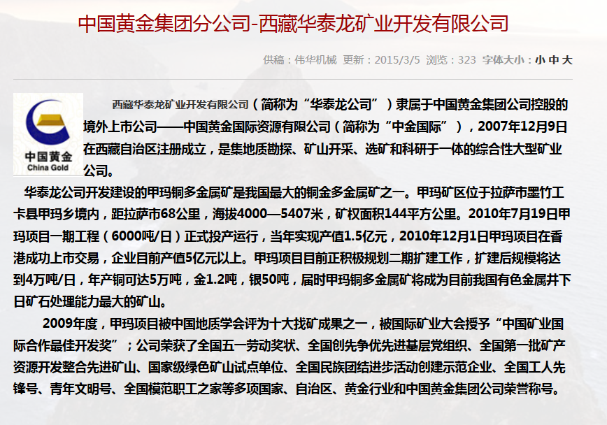 • 合作單位:中國黃金集團(tuán)分公司-西藏華泰龍礦業(yè)開